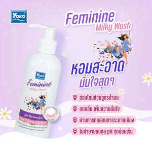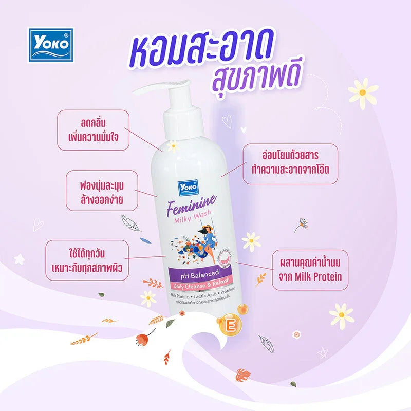 Yoko Feminine Milky Wash 240ml, intimate cleaning product Developed to gently cleanse the intimate area from Yoko without soap that may cause irritation. clean fragrance increase confidence Suitable for daily use