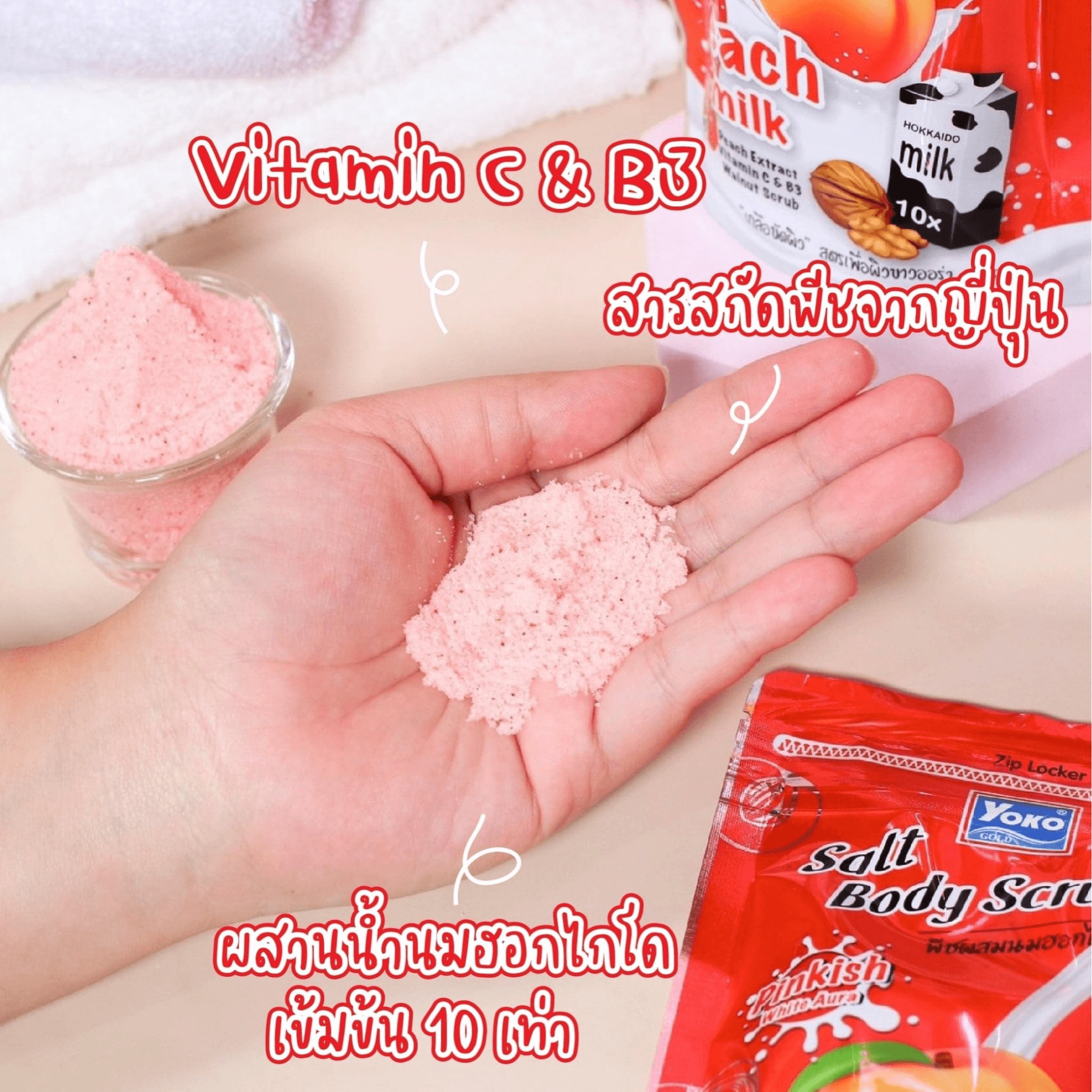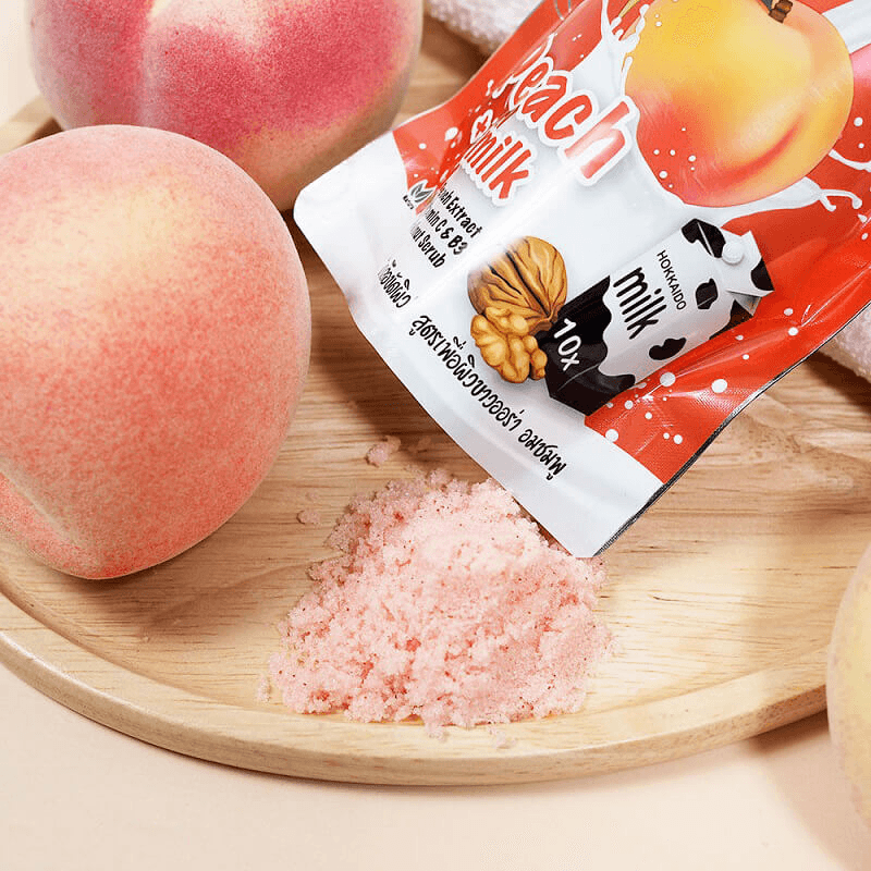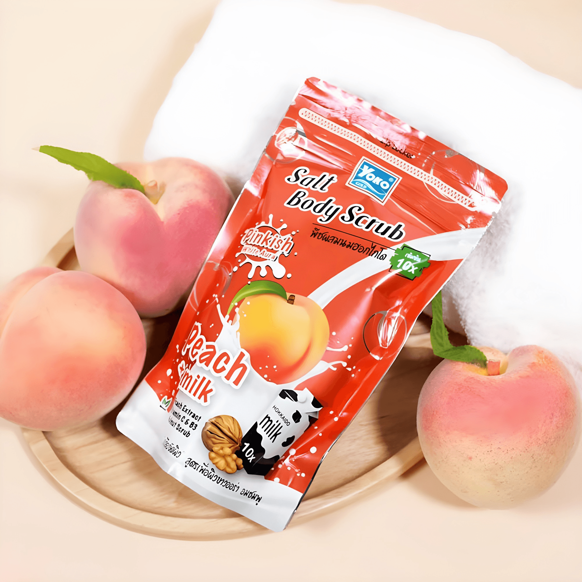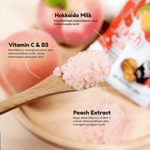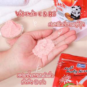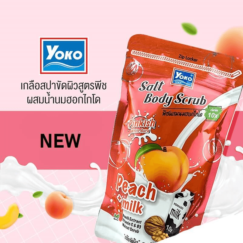 Yoko Gold Milk + Peach Exfoliating Spa Salt is a combination of Hokkaido Milk and ripe Peach.
