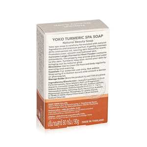 Yoko Turmeric Spa Soap 90g Clean, beautiful, clear skin with Yoko's facial and body cleansing soap with Curcuma Longa (Turmeric) Root Powder. Turmeric helps the skin look radiant, revitalizes the skin, and reveals natural radiance.