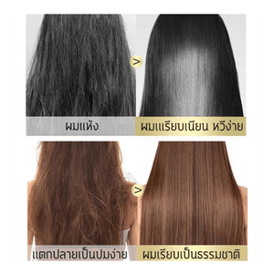 Restores damaged hair from coloring, straightening and perming. Helps restore dry, damaged hair that is brittle, easily broken, lacks weight, frizzy from straightening, perming and coloring to return it to being soft, smooth, shiny, lively. Hair color lasts longer and is easy to style with a combination of the value of keratin complex, argan oil and Korean ginseng that helps deeply nourish and pull the innermost layer of the hair to coat and close the outermost hair cuticles, making it look shiny and lively.